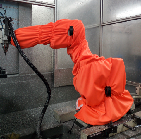 Spraying robots, instead of manpower can improve the quality of spray and material usage, but the various types of spray coating materials in the long-term operation of robot will also damage the robot arm. In particular for the paint pump, the robot body is inevitably in the paint spray explosive environment during the work.The installation of spray robot protective clothing is very important, it can isolate the robot static, dust, flammable etc.ABB irb460 spraying covers.